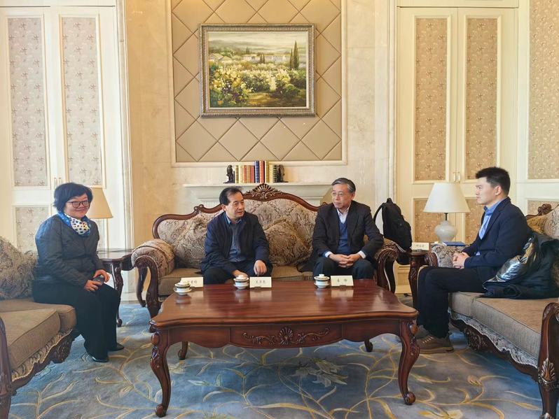 1月15日,全国翻译专业学位研究生(MTI)教育指导委员会副主任委员、上海外国语大学原党委书记姜锋,全国MTI教指委秘书长、上海外国语大学高级翻译学院院长张爱玲,中国外文出版发行事业局翻译院副院长、中国翻译协会副秘书长邢玉堂等一行六人,就我校承办全国翻译专业学位研究生教育2024年年会的筹备情况开展交流。校党委副书记王卫东接待了姜锋一行。