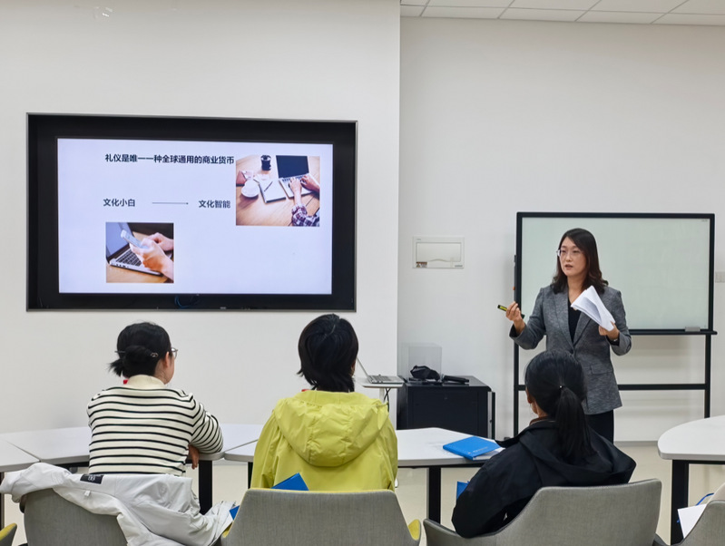 作为学校服务社会的重要窗口,yl8cc永利官网积极整合优质师资,委派长期从事跨文化交流研究与外事服务工作、兼任南通市翻译协会副会长的姜海红副教授担任分享会主讲。在分享会上,她围绕跨文化沟通的战略认知、文化差异理论、区域商务礼仪实践等模块展开系统讲解,将高校研究成果与企业实际需求有机结合,助力学员提升在国际商务环境中的专业素养与实战能力。
