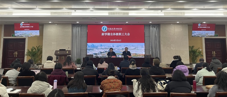 学院党委书记朱小娟传达了校党委书记杨宇民作的题为《凝心聚力谋发展 实干笃行开新局》的讲话精神和校长王建浦作的题为《真抓实干 奋发进取 加快推进特色鲜明的国内一流大学建设》的工作报告精神,并对2026年学院总体工作提出四点要求:一是提高政治站位,锚定发展大局,把思想和行动统一到学校和学院的决策部署上来,主动融入学校国内一流大学建设进程;二是强化责任担当,立足本职岗位,在教学改革、科研创新、人才培养等领域履职尽责、攻坚克难;三是坚持守正创新,紧跟新文科与数智化发展趋势,积极探索外语学科融合发展新路径,锤炼过硬专业本领;四是凝聚奋进合力,秉持协同协作、实干笃行的作风,推动学院各项工作提质增效,为学校 “十五五” 良好开局贡献yl8cc永利官网的坚实力量。