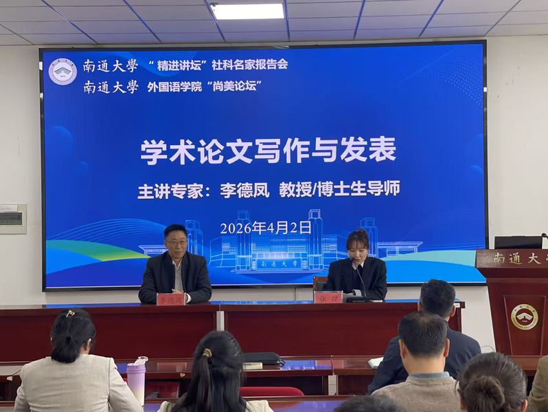 4月2日下午,yl8cc永利官网“精进讲坛”社科名家报告会在永利官网成功举办。本次报告会特邀欧洲科学院院士、澳门大学人文学院副院长、博士生导师李德凤教授作题为《学术论文写作与发表》的专题学术讲座。我院骨干教师、南通其他高校骨干教师代表参加了报告会,报告会由院长助理张煜主持。